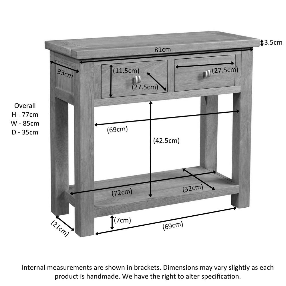 Two dovetailed drawers provide smooth, durable storage for keys, mail and everyday items, while modern square metal handles complete the contemporary aesthetic. The console’s compact footprint makes it suitable for hallways, small living spaces and behind sofas.