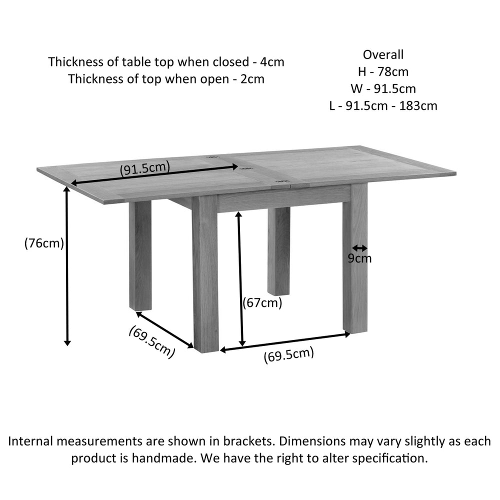 - Flip-top extendable design provides extra dining surface when required and a compact footprint when not in use.