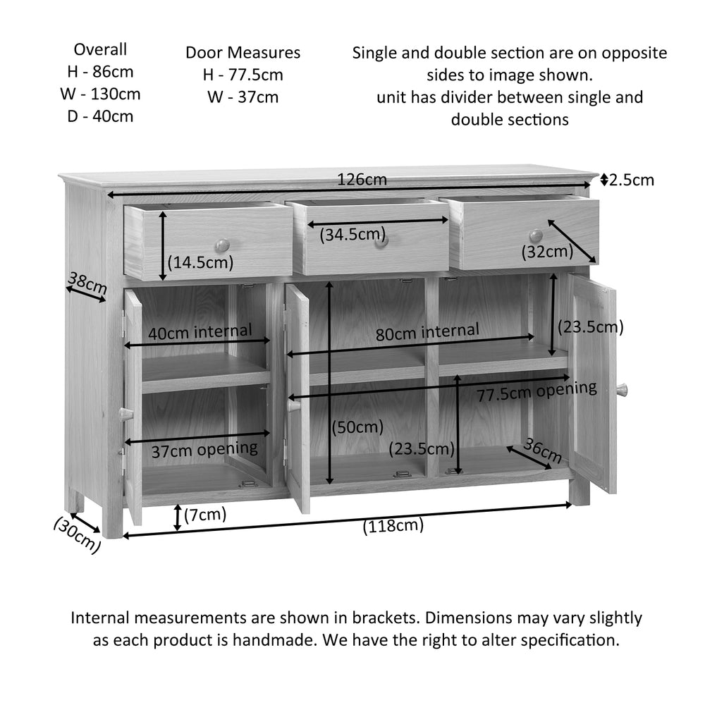 Designed for everyday family life, the sideboard balances durability with refined detailing. The combination of oak veneer, plywood/MDF and solid timber elements gives you the warmth of natural wood alongside engineered stability, making it suitable for modern interiors that need reliable storage without sacrificing style.