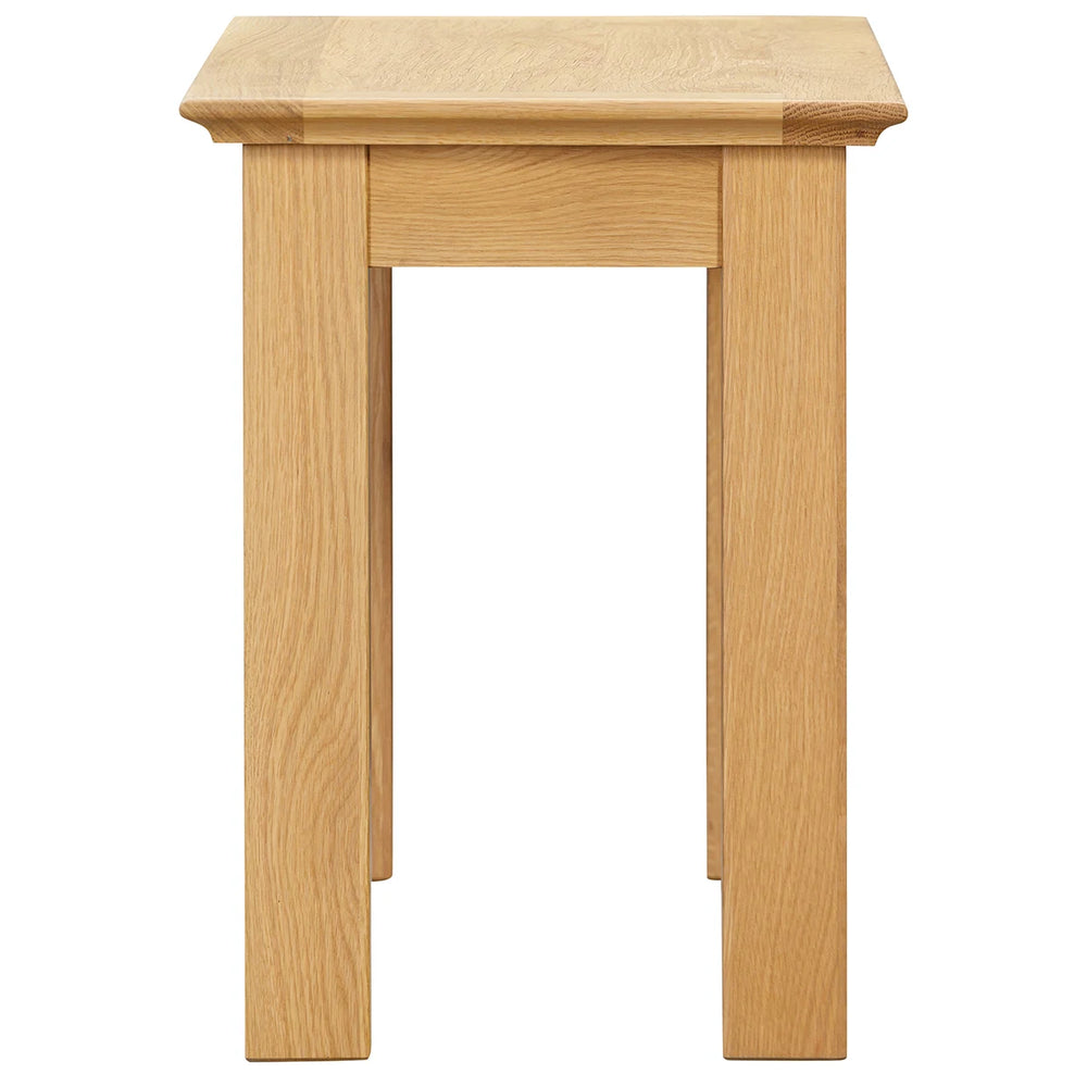Crafted from a combination of oak, oak veneer, rubberwood, pine, MDF and plywood, the bench is finished in a light protective lacquer to resist everyday wear and maintain the timber’s natural tone. The collection features moulded tops and dovetailed drawers in other pieces, reflecting the same attention to detail and construction.