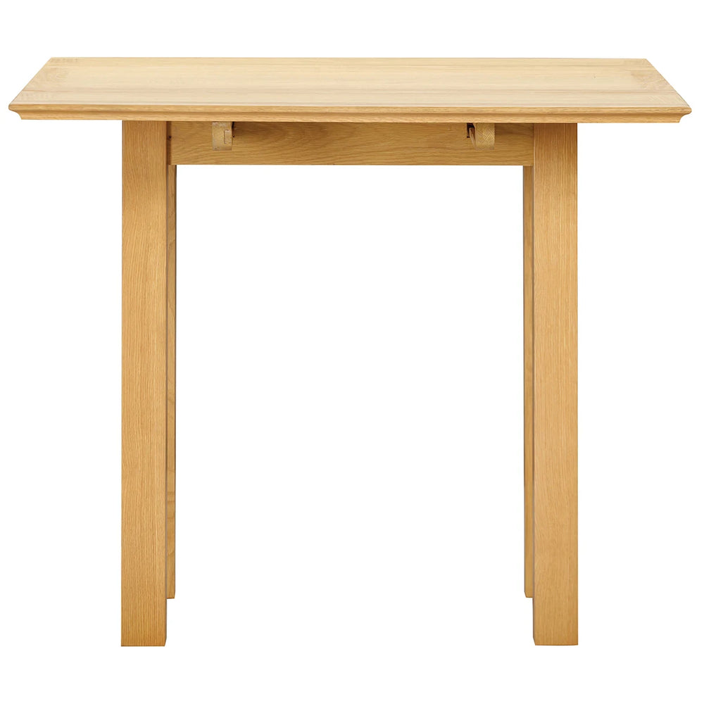 A compact square drop-leaf dining table designed for small and modern homes. The Thornbury Oak table pairs solid oak elements with oak-veneered engineered boards for a natural look and durable surface. Its 90 cm square top gives flexible dining space while retaining a neat footprint.
