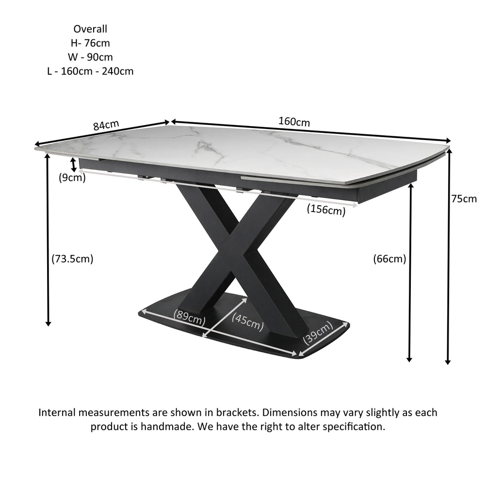 This table extends from 160 cm to 240 cm to suit family meals, dinner parties and flexible dining layouts. The sintered stone surface is waterproof, weatherproof and stain‑proof, so it resists spills and is straightforward to wipe clean. The matt black powder coating on the base gives durable protection against surface marks and finish wear.
