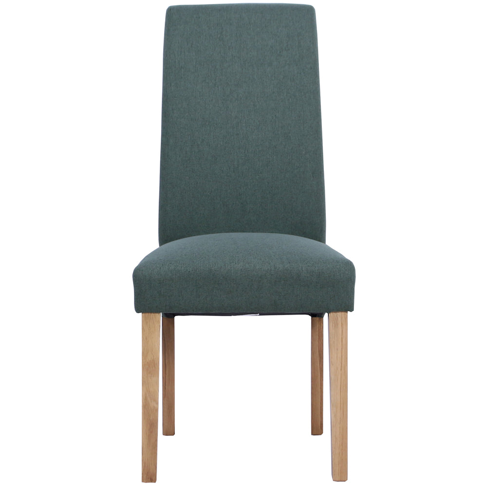 Legs are crafted from White Oak, providing a durable, warm base that complements the rich green felt upholstery. The chair’s sprung seat adds an extra layer of comfort, making longer meals and conversations more enjoyable without compromising the chair’s compact footprint.