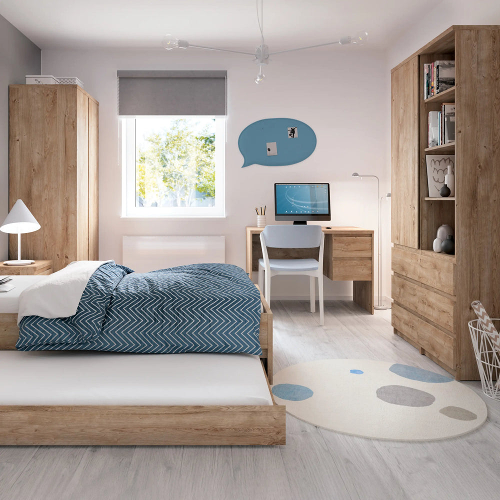 Fribo Tall Bookcase with 3 Drawers in Oak