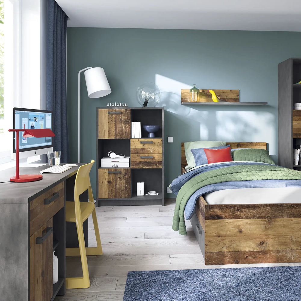 Brooklyn Cabinet 3 Doors and 1 Drawer Walnut and Dark Grey