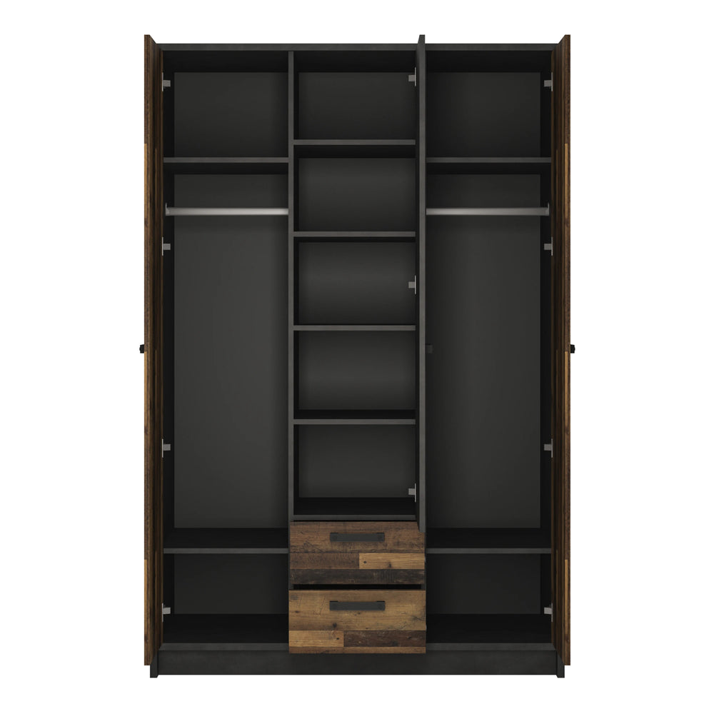Brooklyn 3 Door Wardrobe with 2 Drawers in Walnut and Dark Matera Grey
