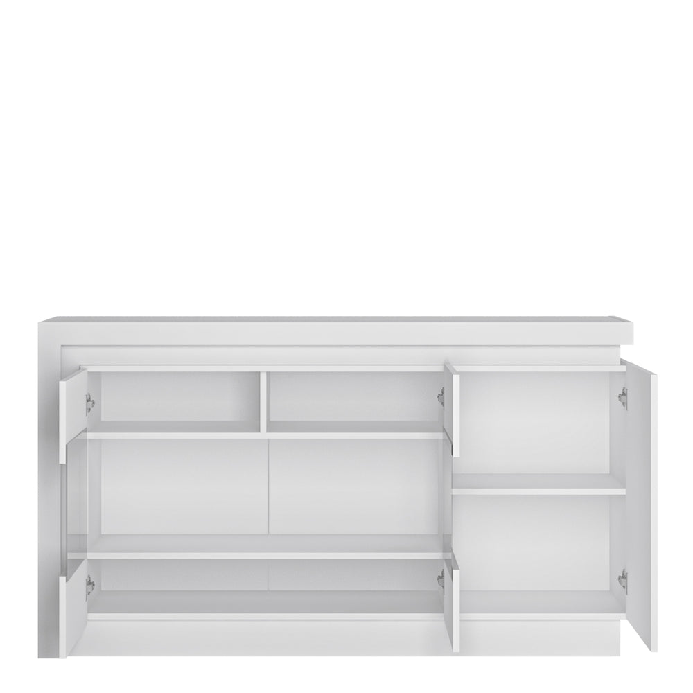 Lyon 3 Door Glazed Sideboard (including LED lighting) in White and High Gloss