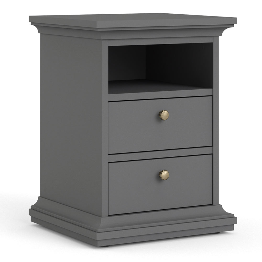 Paris Package - Bedside 2 Drawers + Chest of 4 Drawers + Wardrobe with 2 Doors Matt Grey