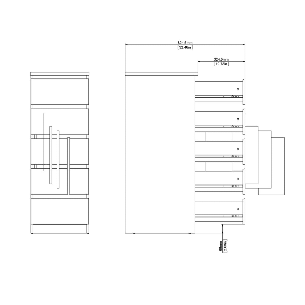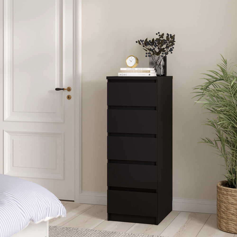 Naia Narrow Chest of 5 Drawers in Black Matt