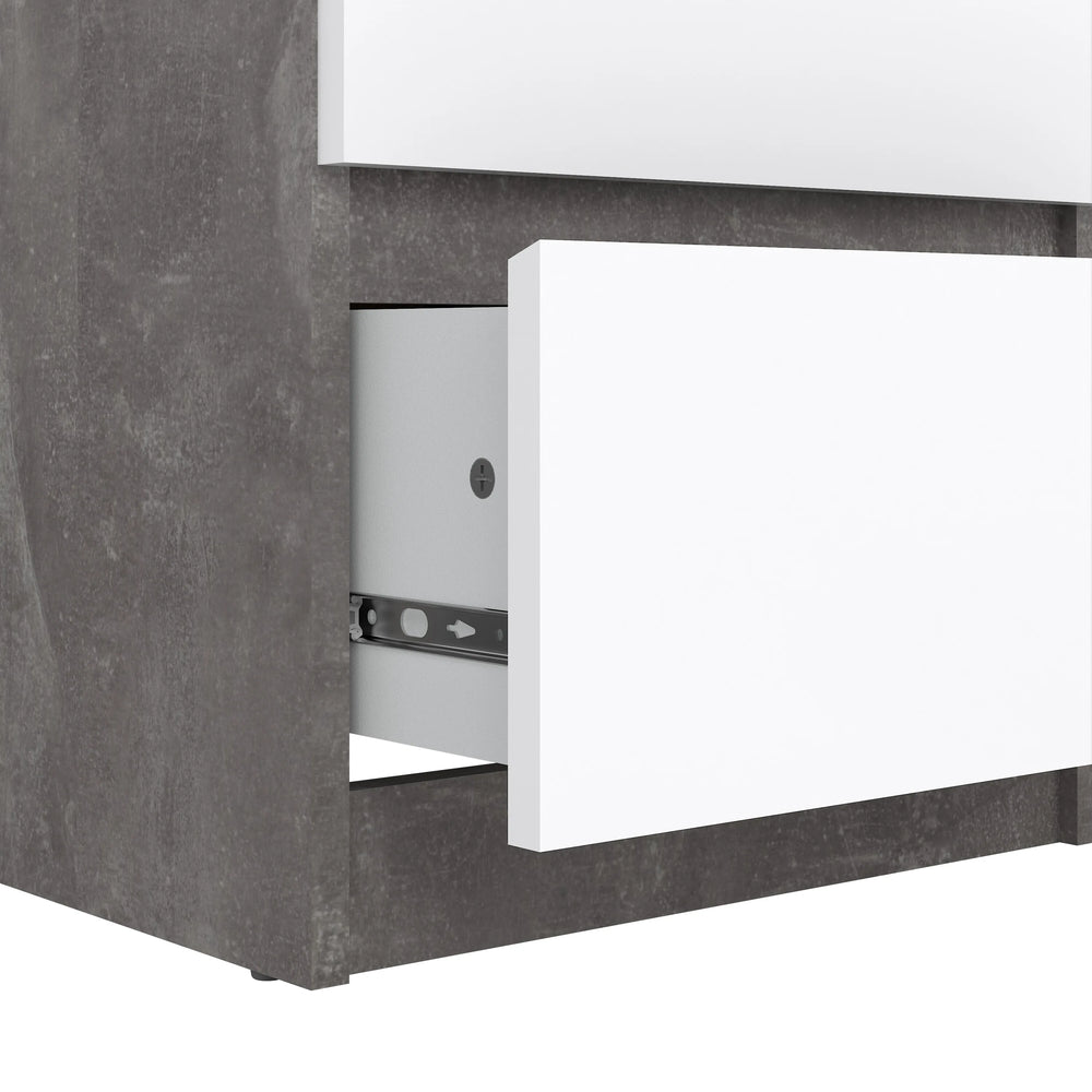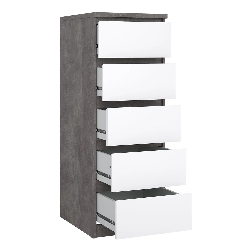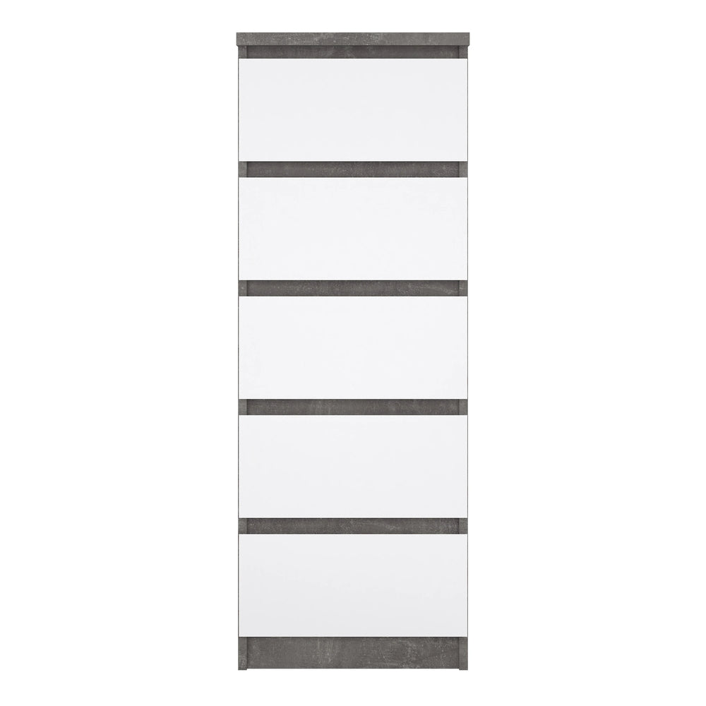 Naia Narrow Chest of 5 Drawers in Concrete and White High Gloss