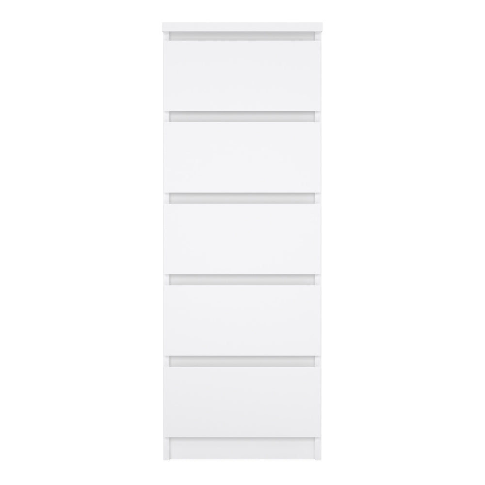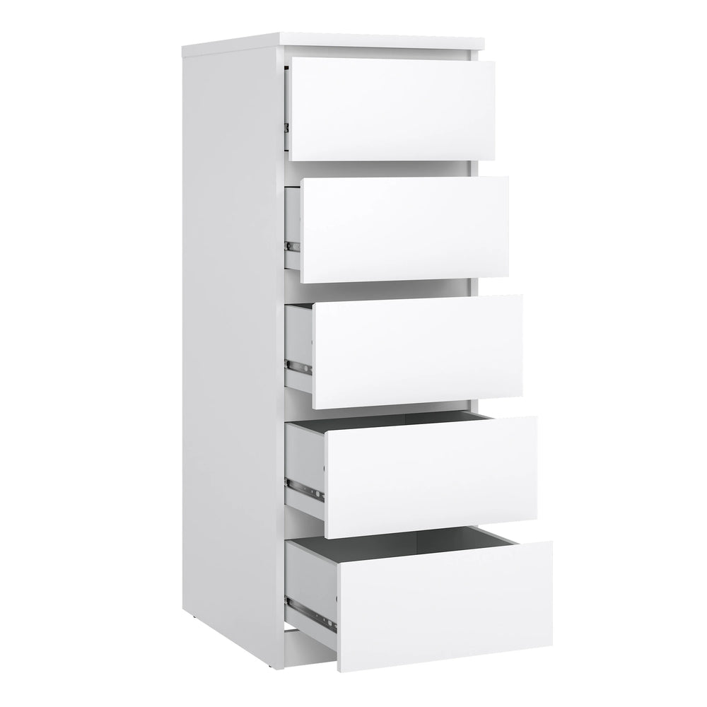 Naia Narrow Chest of 5 Drawers in White High Gloss