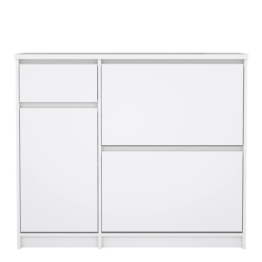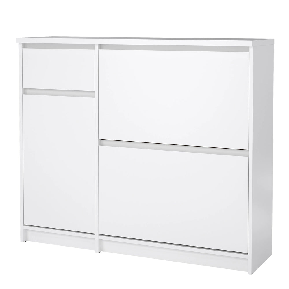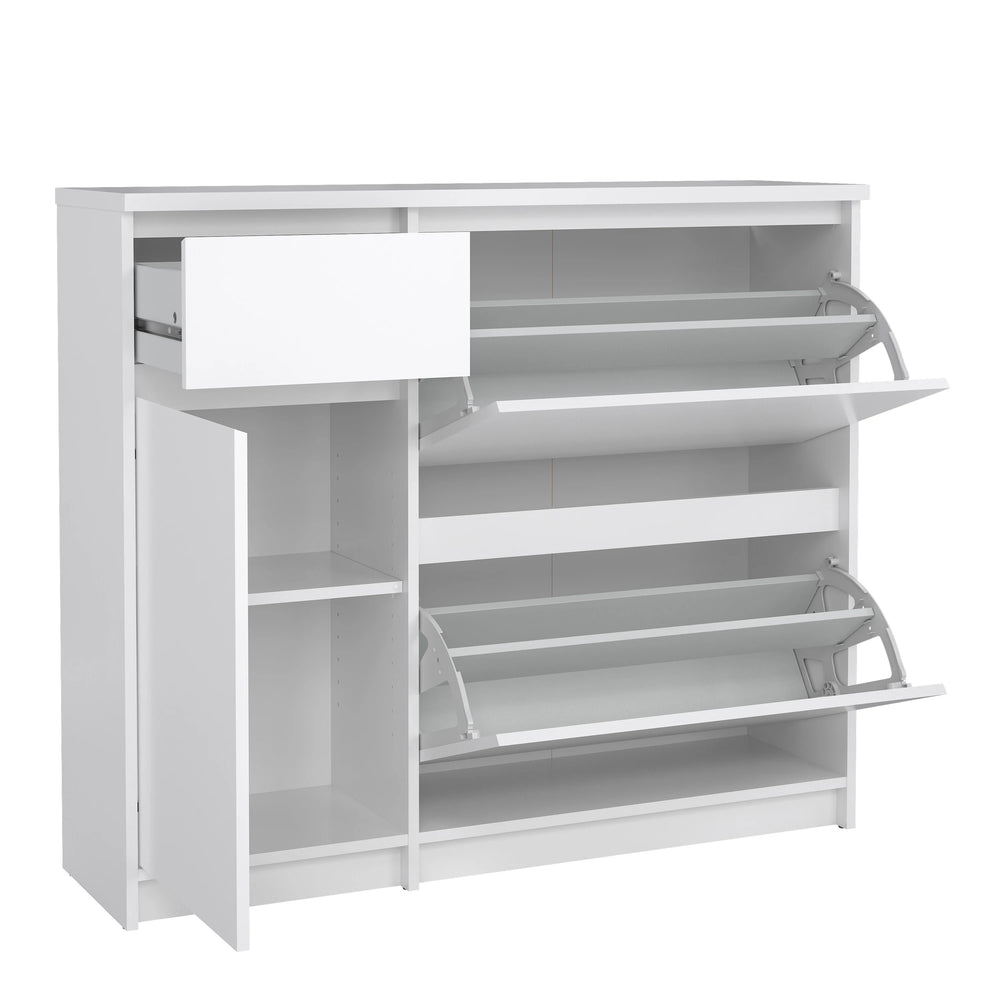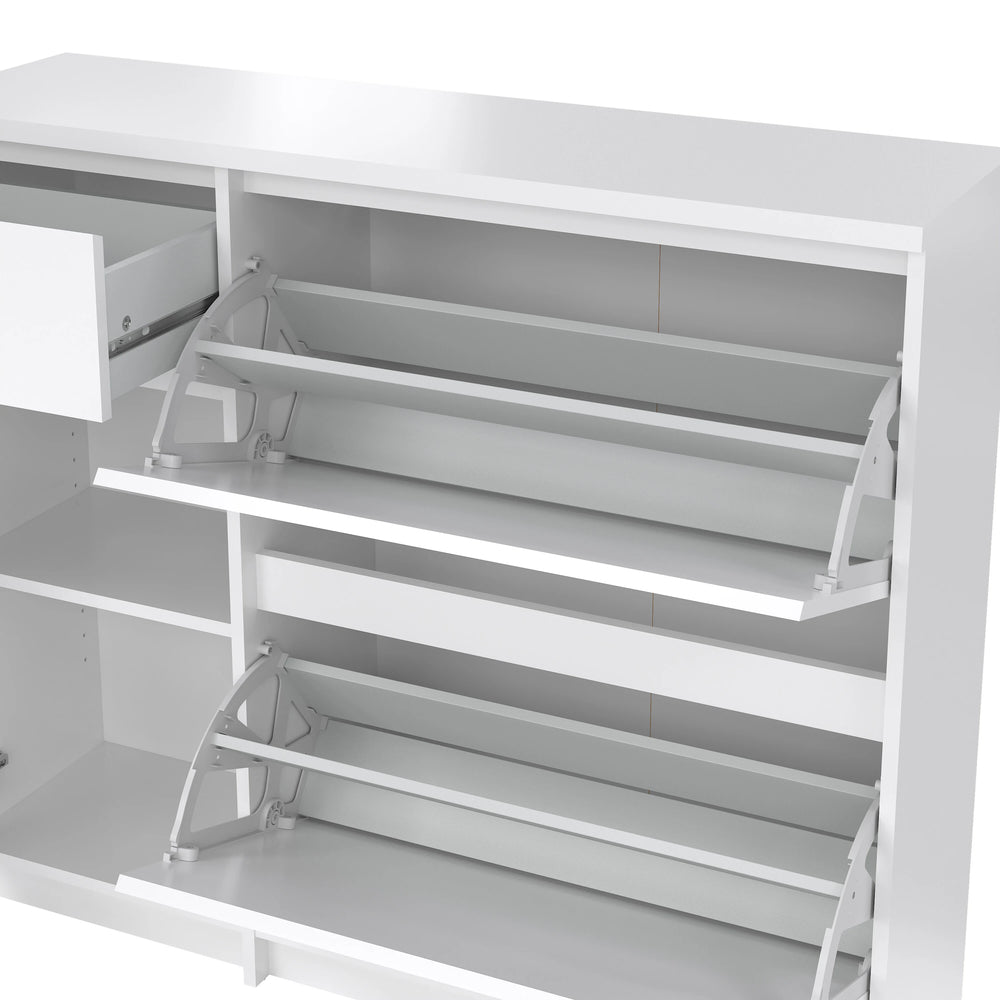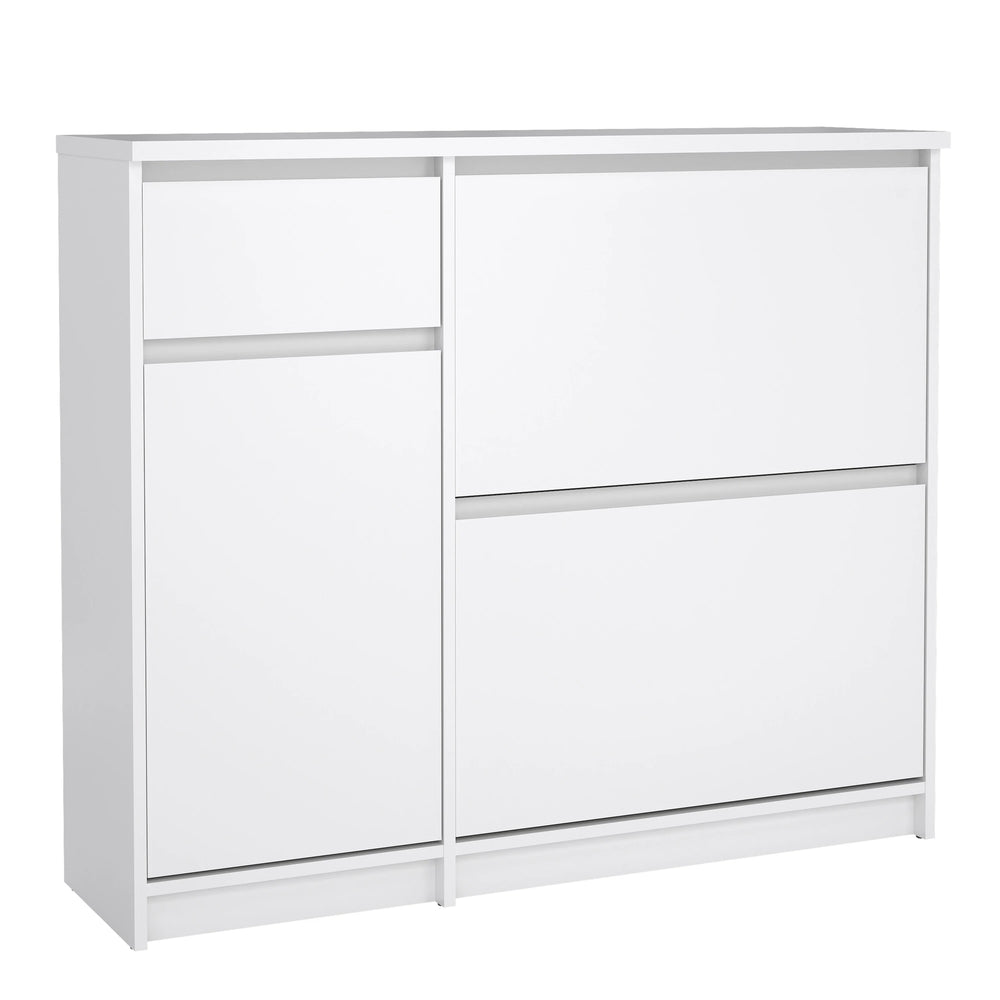 Naia Shoe Cabinet with 2 Flip Down Doors 1 Door and 1 Drawer in White High Gloss