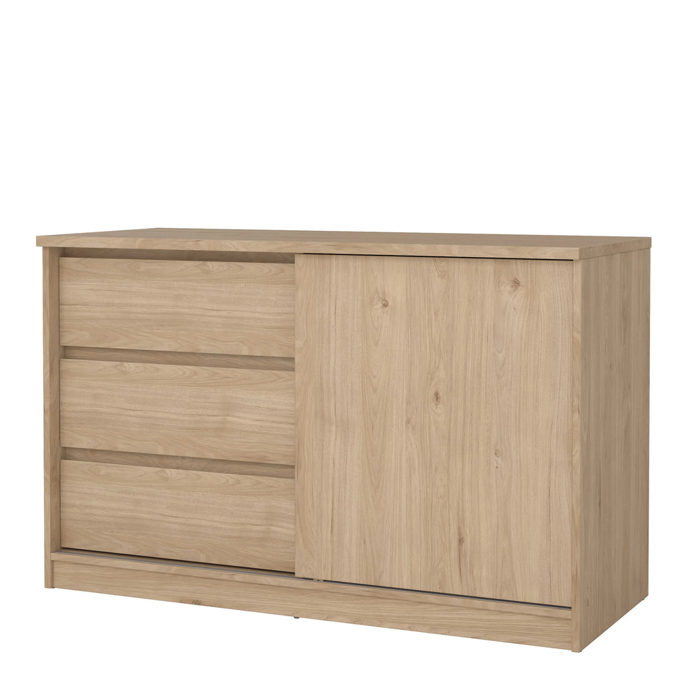 Naia Storage Unit with 1 Sliding Door and 3 Drawers in Jackson Hickory Oak is backordered and will ship as soon as it is back in stock.