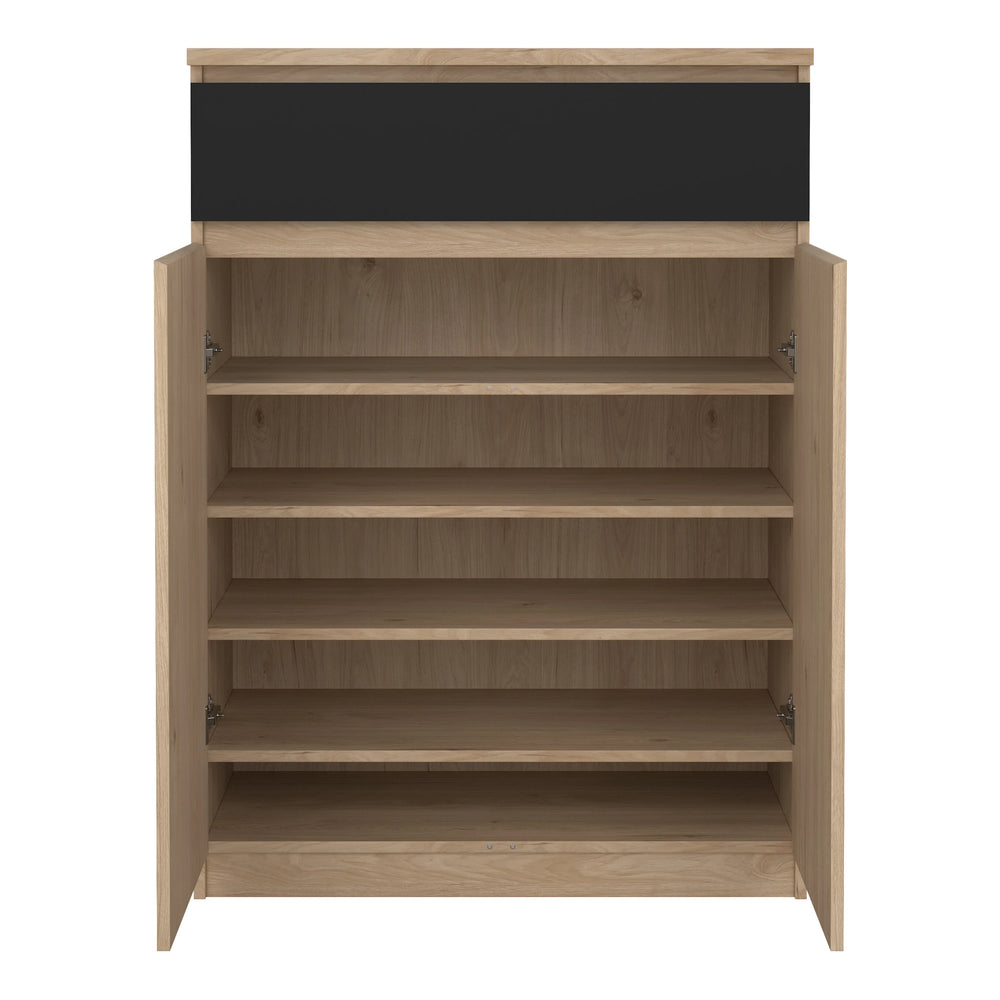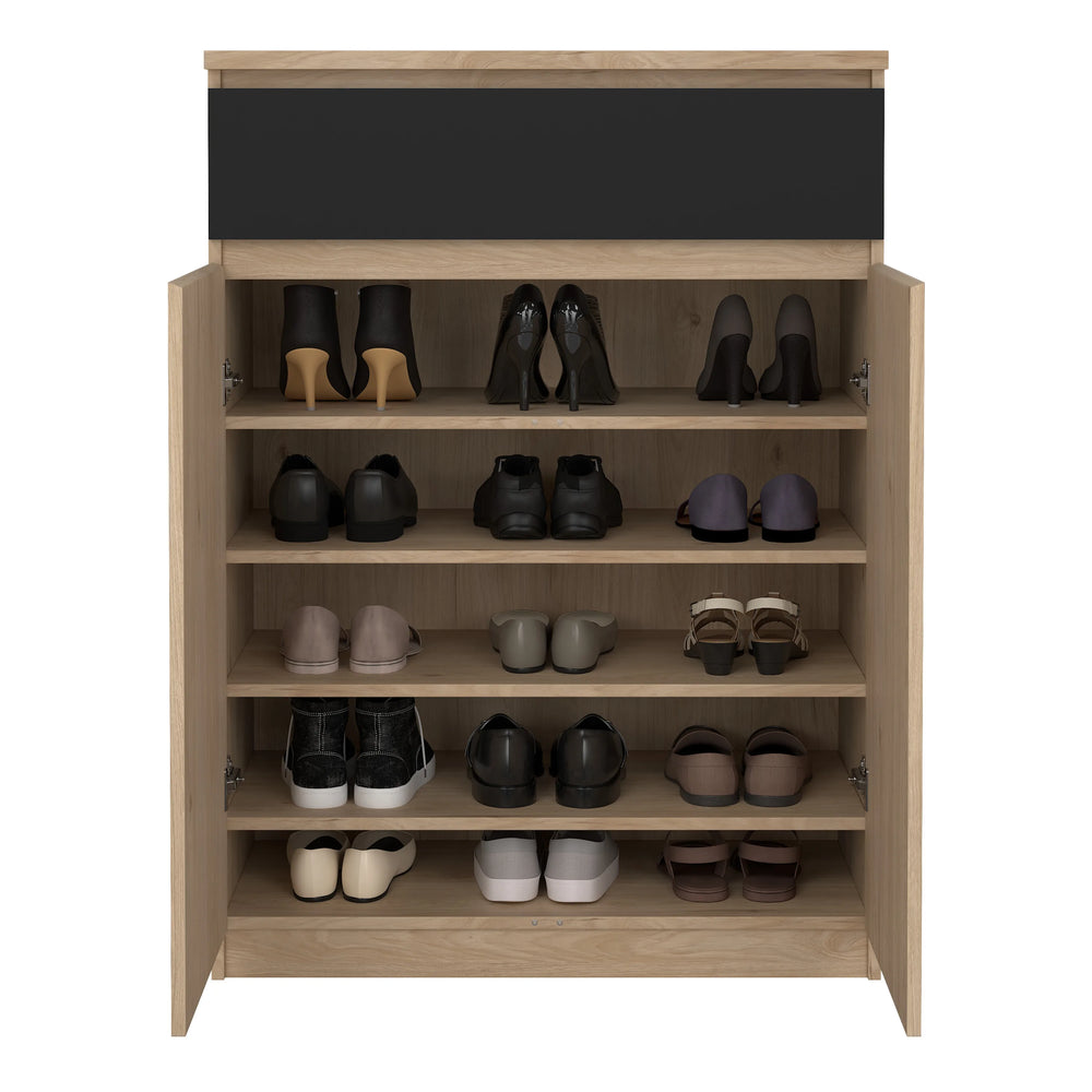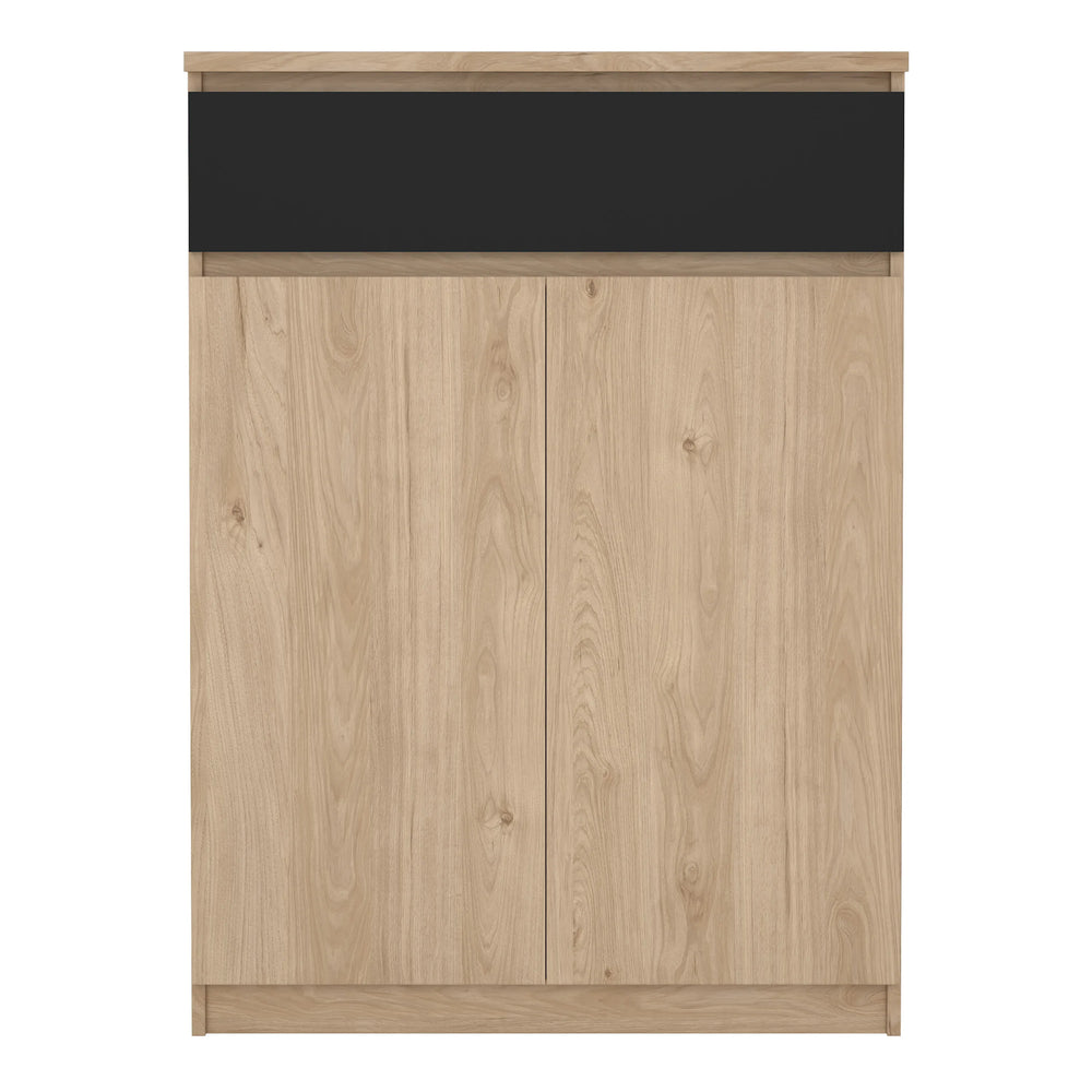Naia Shoe Cabinet with 2 Doors 1 Drawer in Jackson Hickory Oak and Black