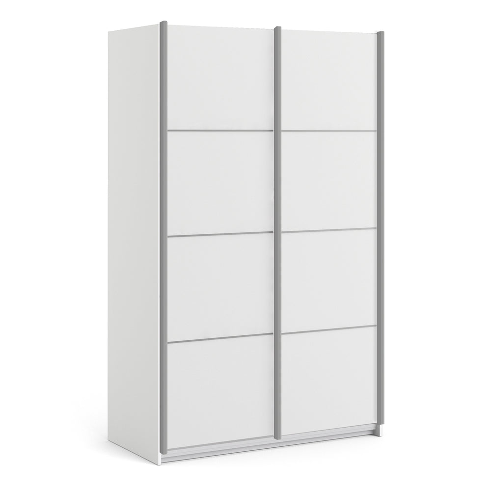 Verona Sliding Wardrobe 120cm in White with White Doors with 2 Shelves