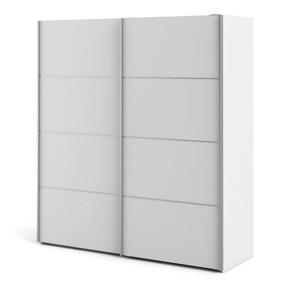 Verona Sliding Wardrobe 180cm in White with White Doors with 2 Shelves