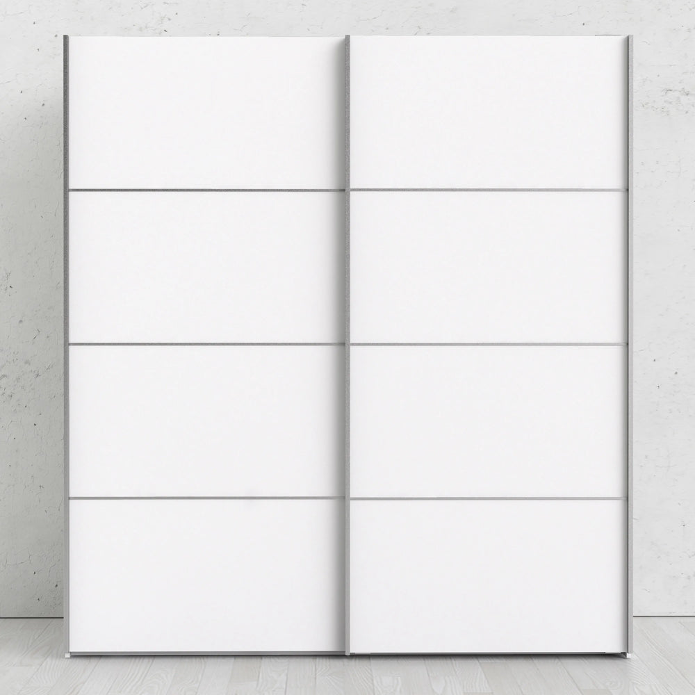 Verona Sliding Wardrobe 180cm in White with White Doors with 5 Shelves