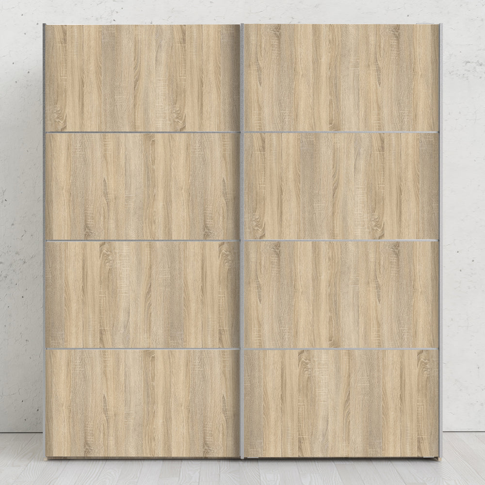 Verona Sliding Wardrobe 180cm in White with Oak Doors with 5 Shelves