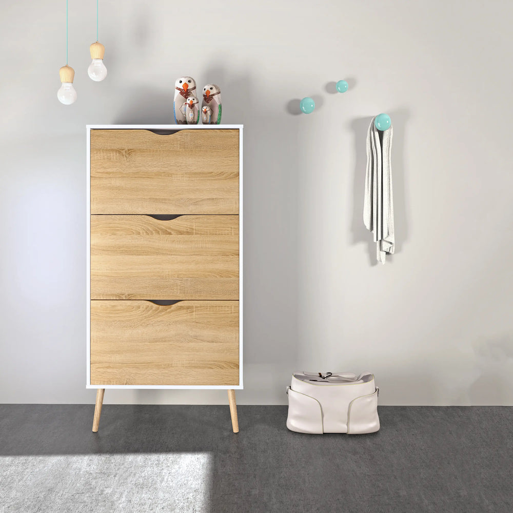 Oslo 3 Drawer Shoe Cabinet in White and Oak
