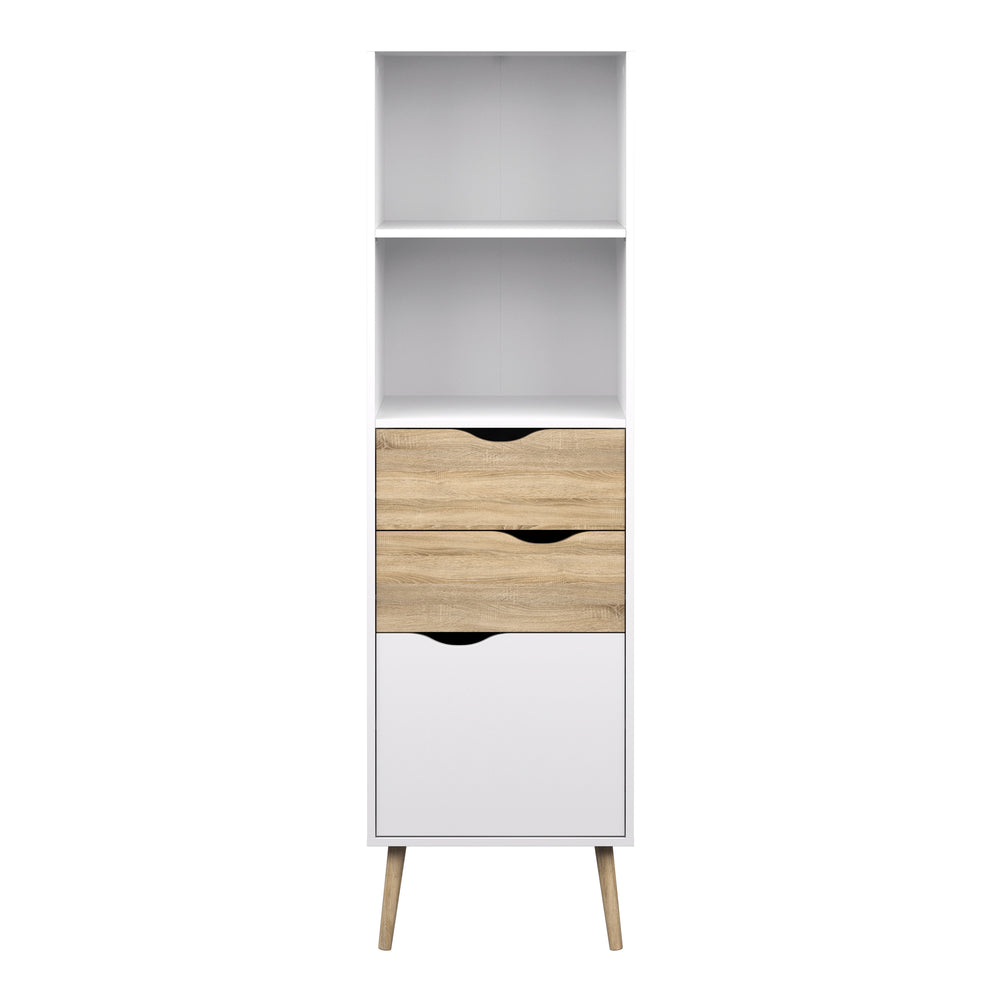 Oslo Bookcase with 2 Drawers and 1 Door White and Oak