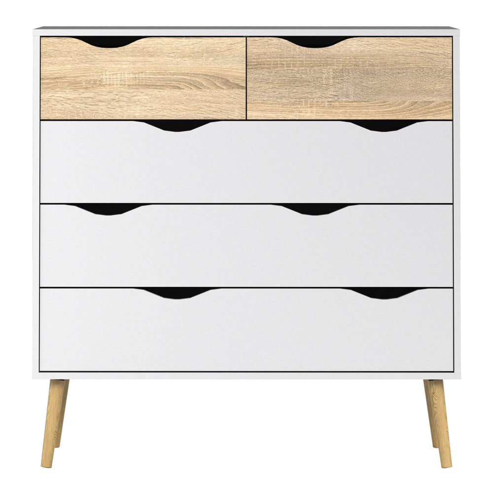 Oslo Chest of 5 Drawers in White and Oak is backordered and will ship as soon as it is back in stock.