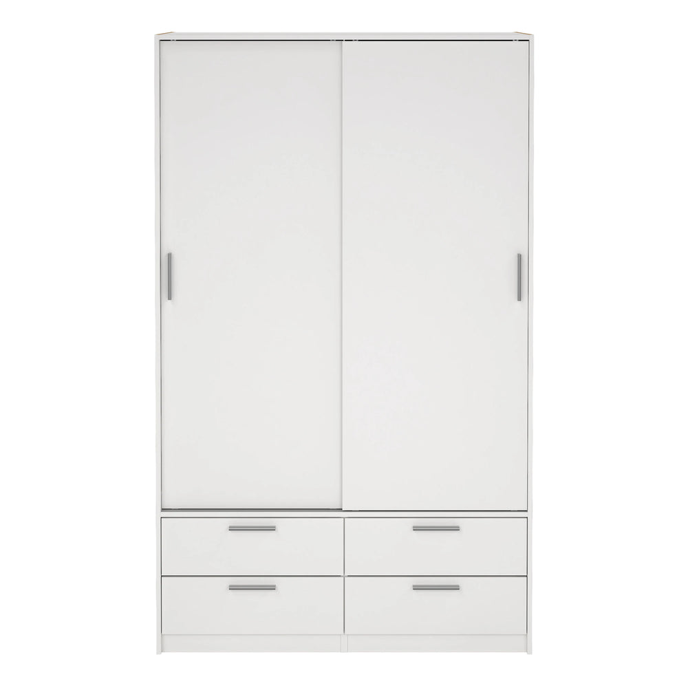 Line Wardrobe with 2 Sliding Doors and 4 Drawers in White