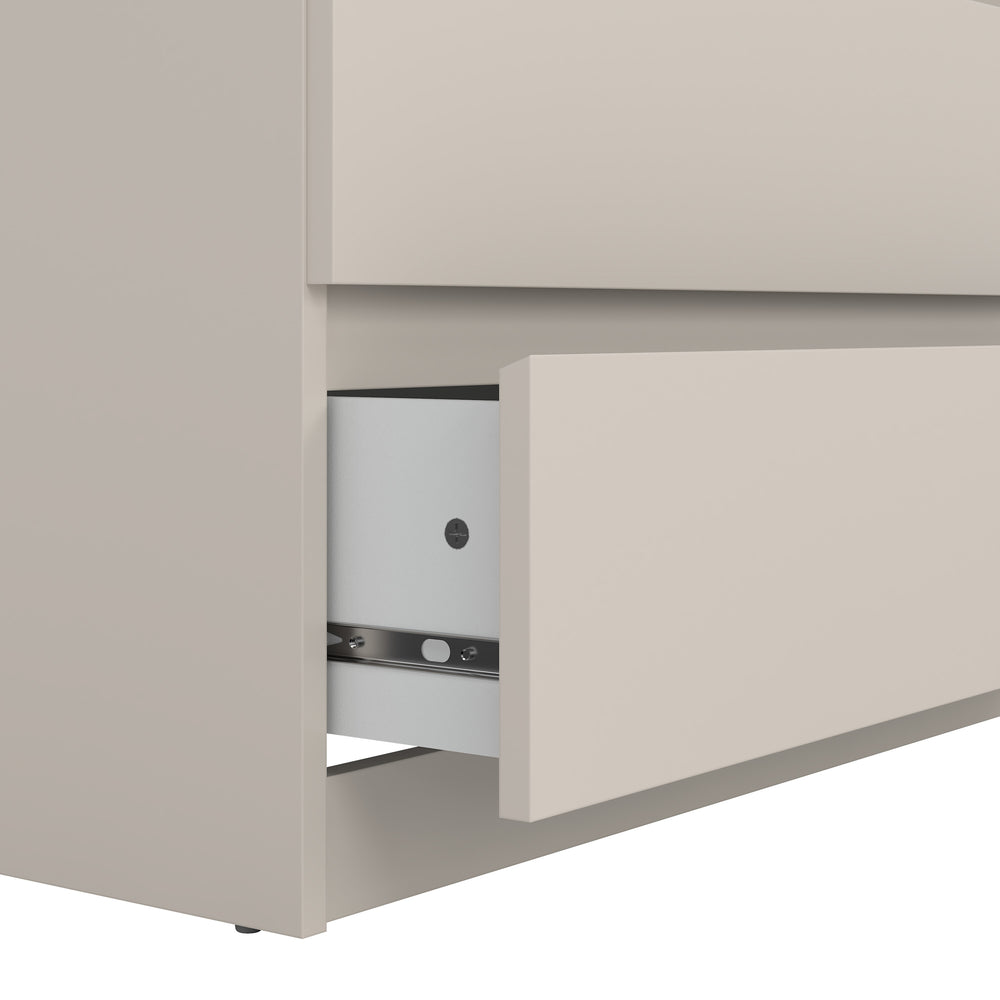 - The smooth finish and the handleless drawers add to the aesthetic touch of the chest of drawers.