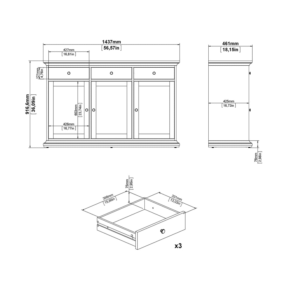 Paris Sideboard with 3 Doors and 3 Drawers in White