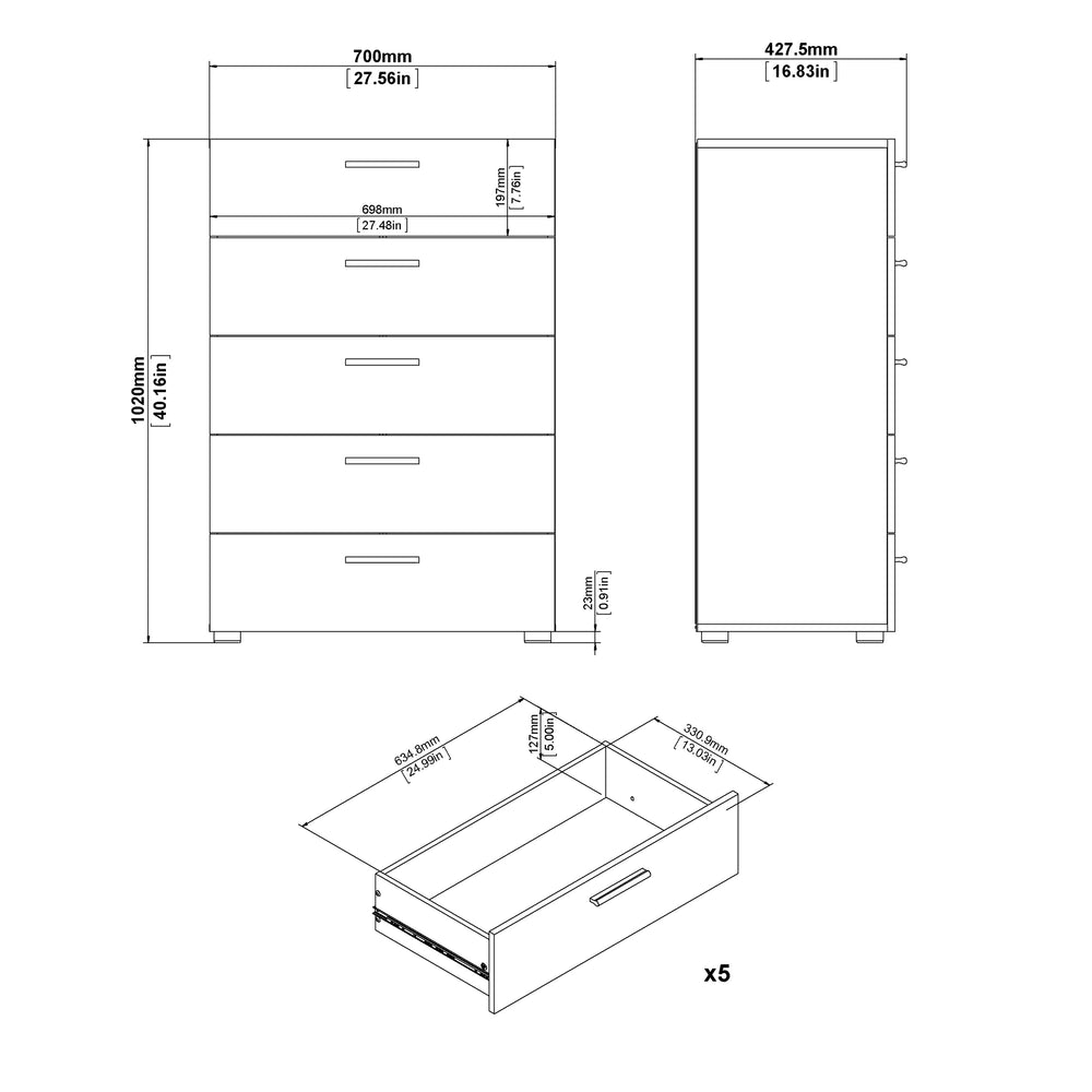 Pepe Chest of 5 Drawers in Black