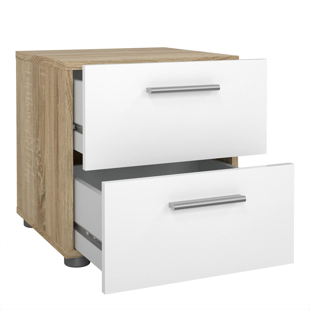 Pepe Package - Bedside 2 Drawers + Chest of 4 Drawers + Wardrobe with 2 Doors in Oak with White High Gloss is backordered and will ship as soon as it is back in stock.