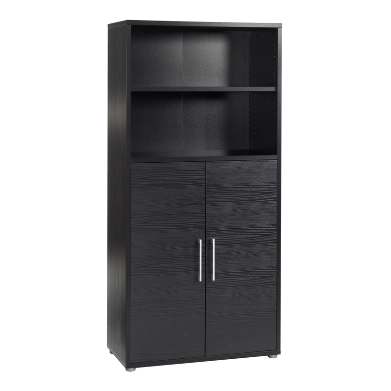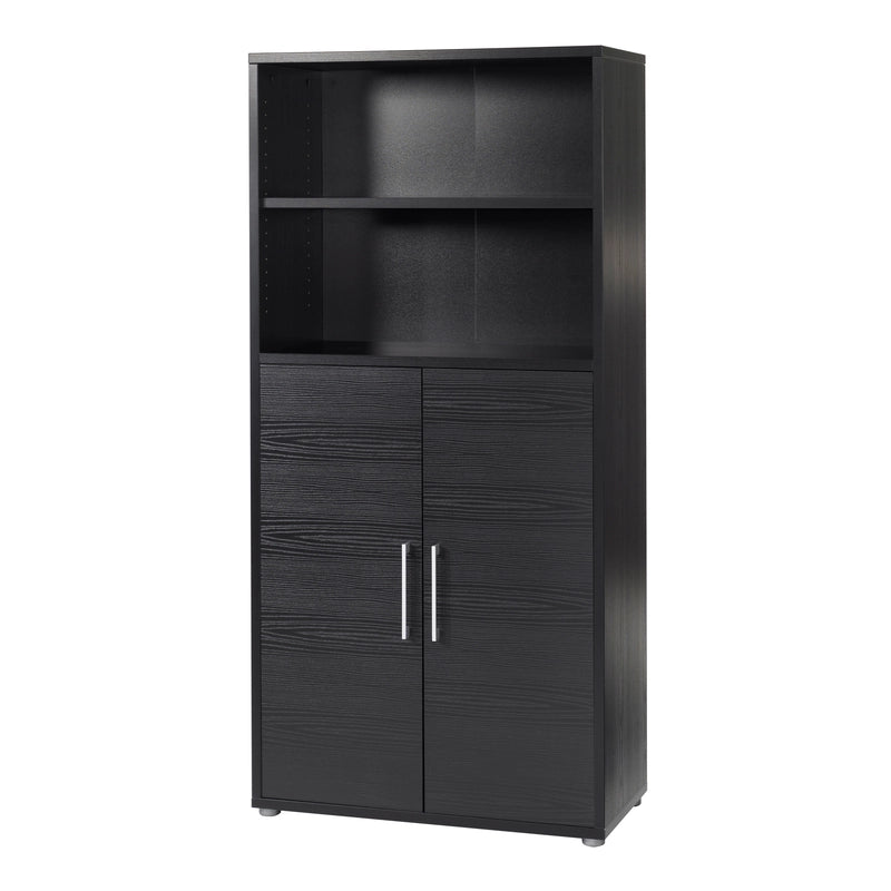 Prima Bookcase 3 Shelves with 2 Doors in Black Woodgrain