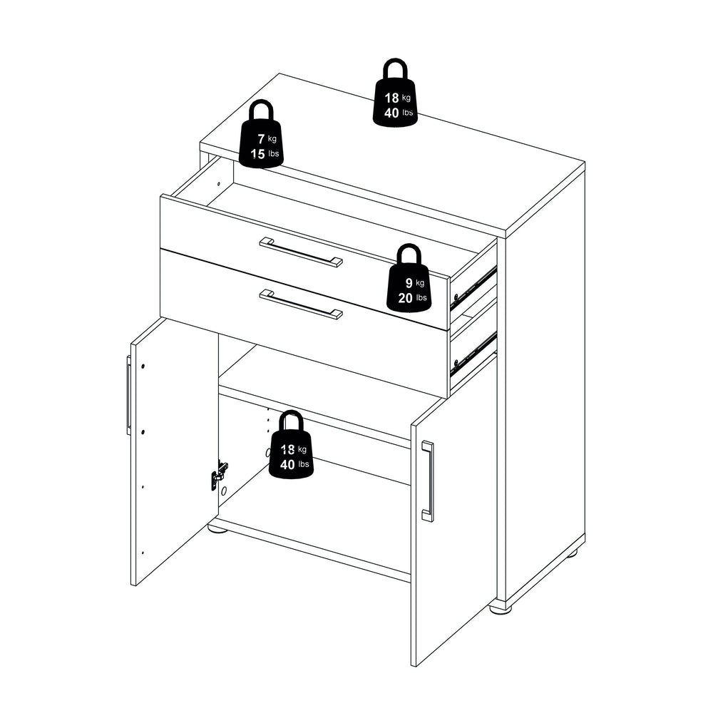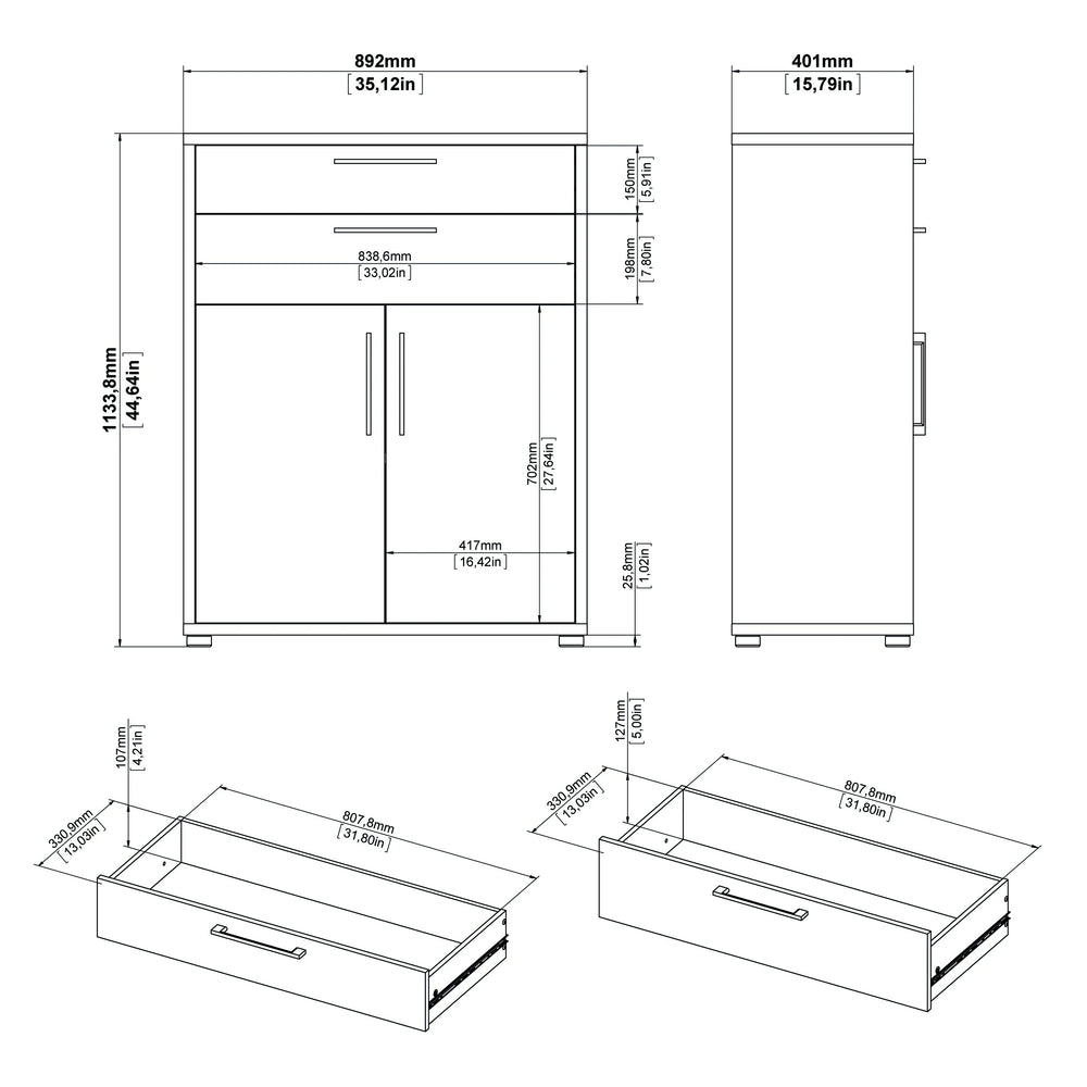 Prima Bookcase 3 Shelves with 2 Drawers 2 Doors in Oak