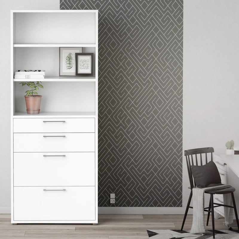Prima Bookcase 2 Shelves 2 Drawers 2 File Drawers in White