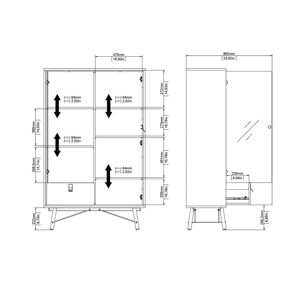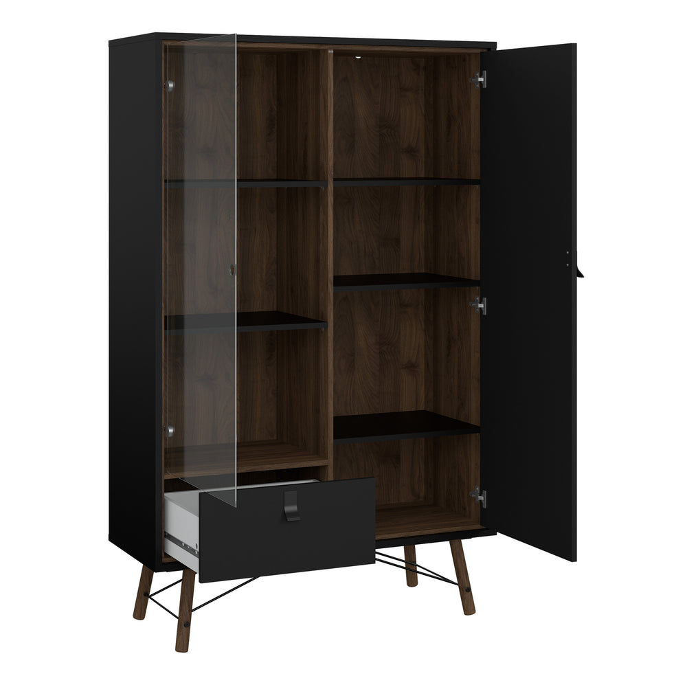 Ry China Cabinet with Glass Door and Drawer in Matt Black Walnut