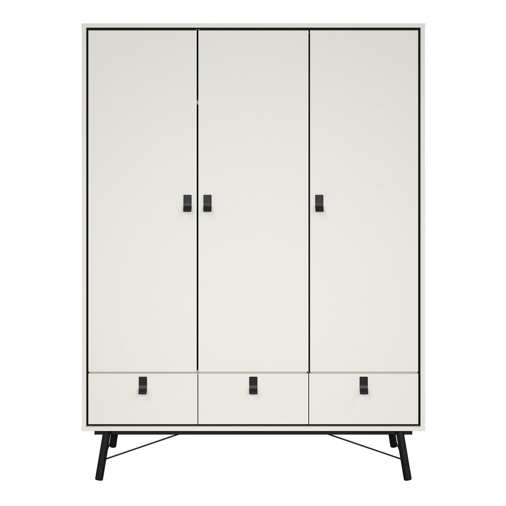 Ry Wardrobe 3 Doors 3 Drawers in Matt White