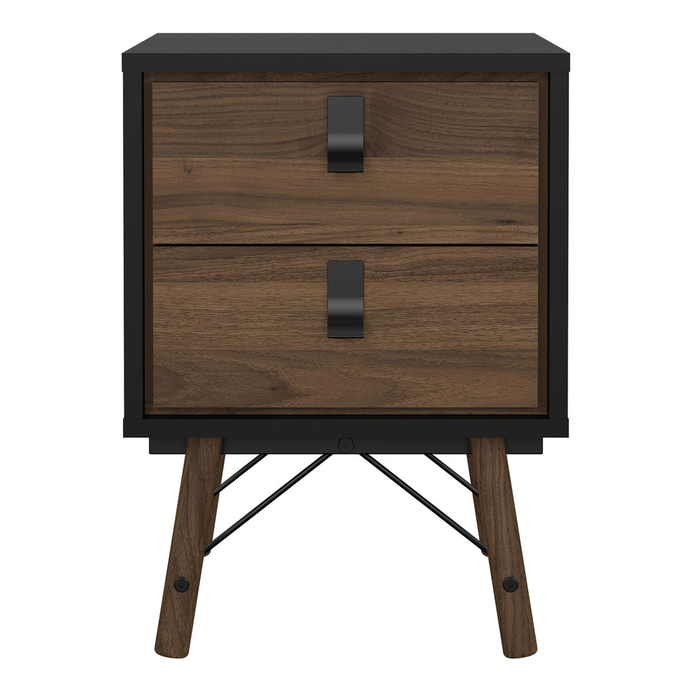 Ry Bedside Cabinet 2 Drawers Matt Black Walnut
