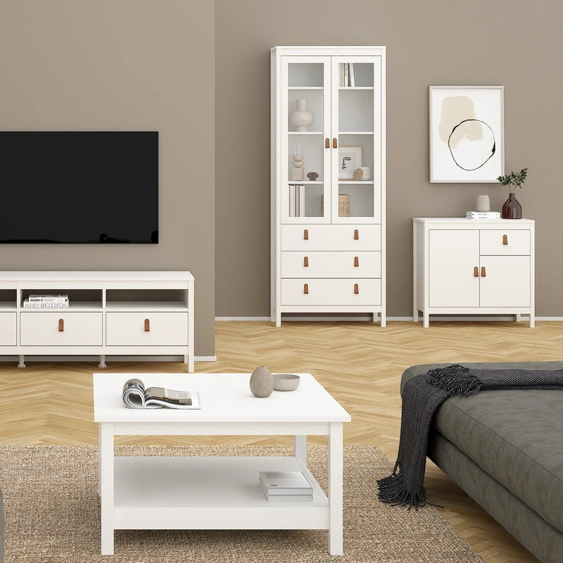 Barcelona China Cabinet 2 Glass Doors with 3 Drawers in White