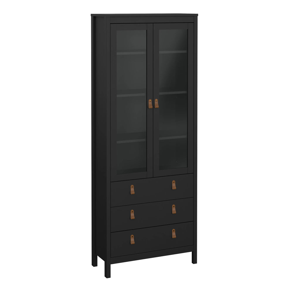 Barcelona China Cabinet 2 Glass Doors with 3 Drawers in Matt Black