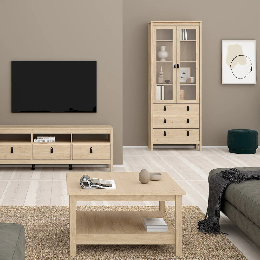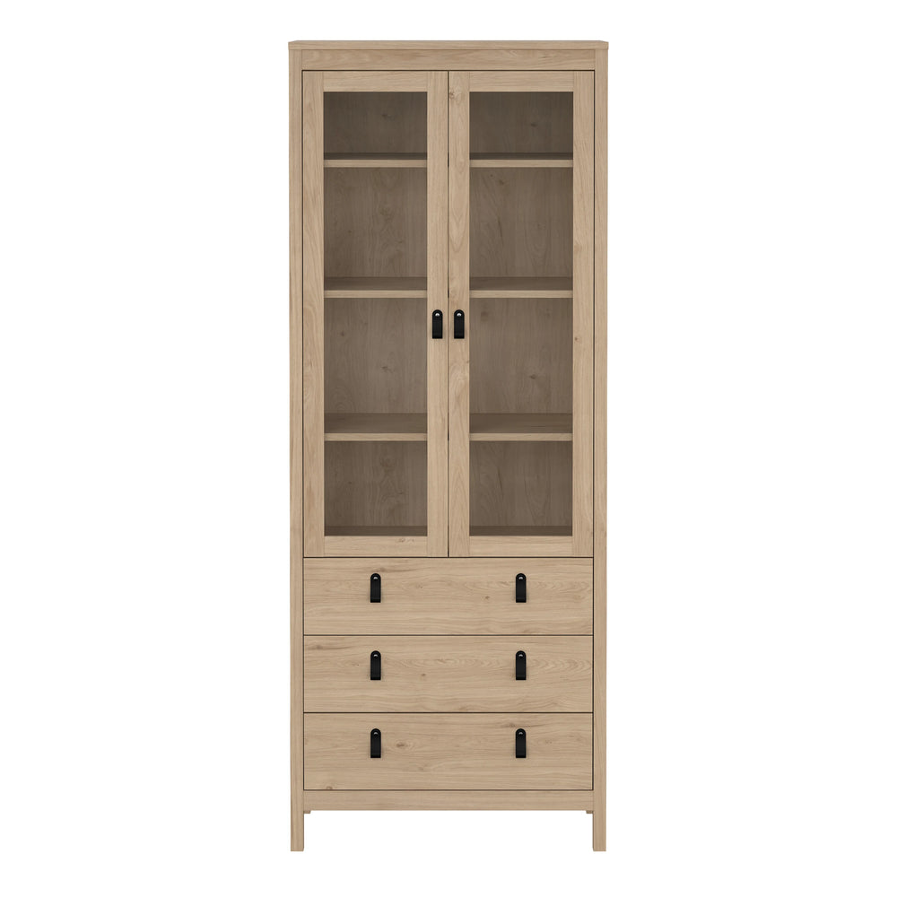 Barcelona China Cabinet 2 Glass Doors with 3 Drawers in Oak
