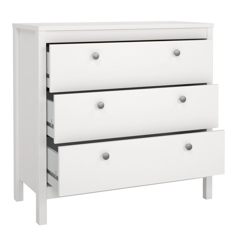 Madrid Chest 3 Drawers in White is backordered and will ship as soon as it is back in stock.