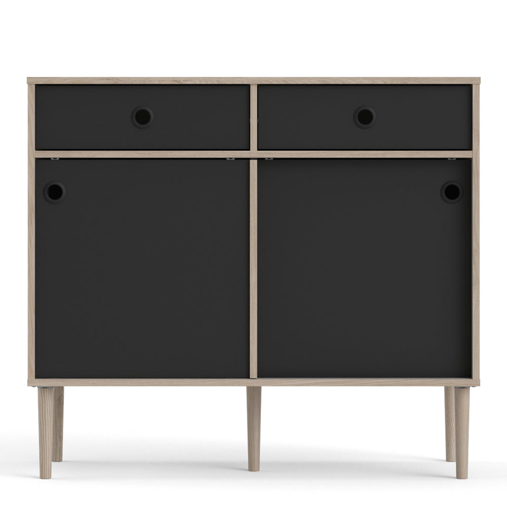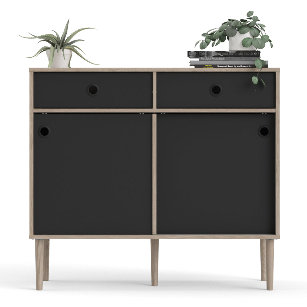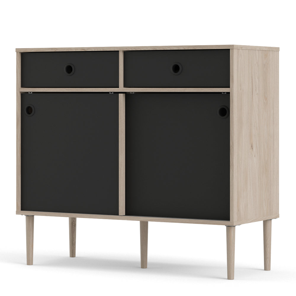 Rome Sideboard 2 Sliding Doors and 2 Drawers Oak and Matt Black