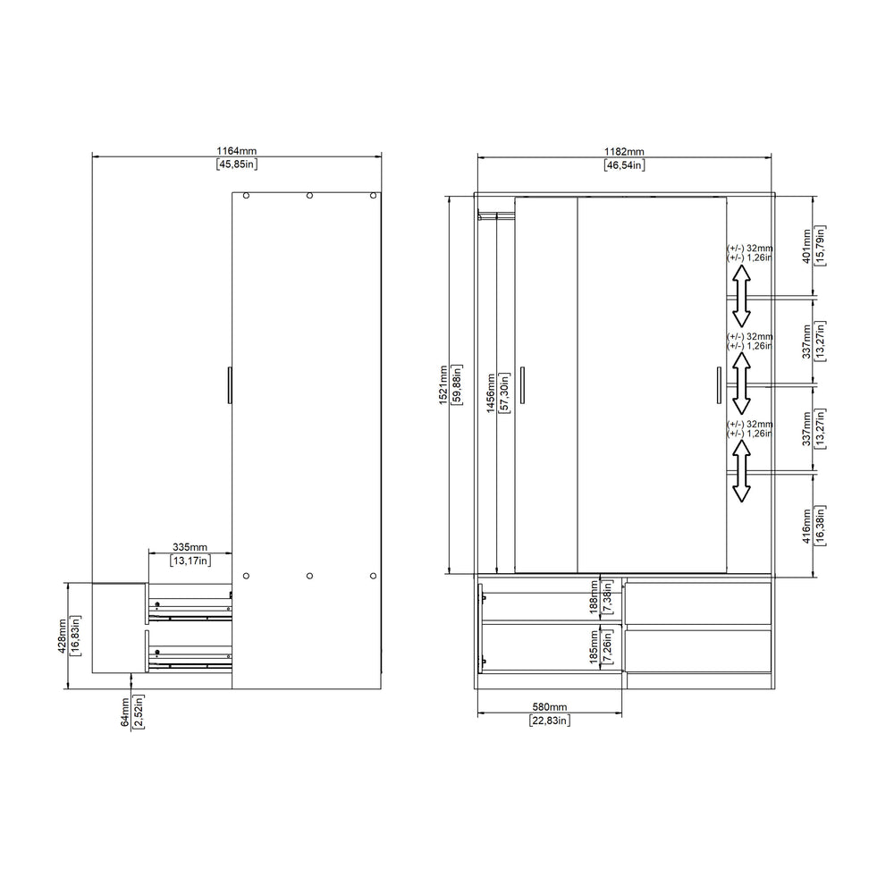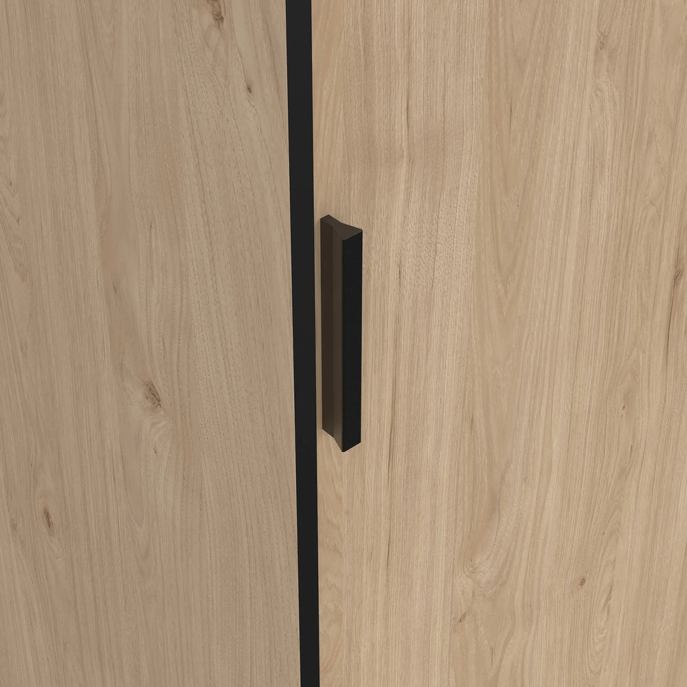 Line Wardrobe with 2 Sliding Doors 1 Small Door and 2 Drawers in Jackson Hickory Oak is backordered and will ship as soon as it is back in stock.