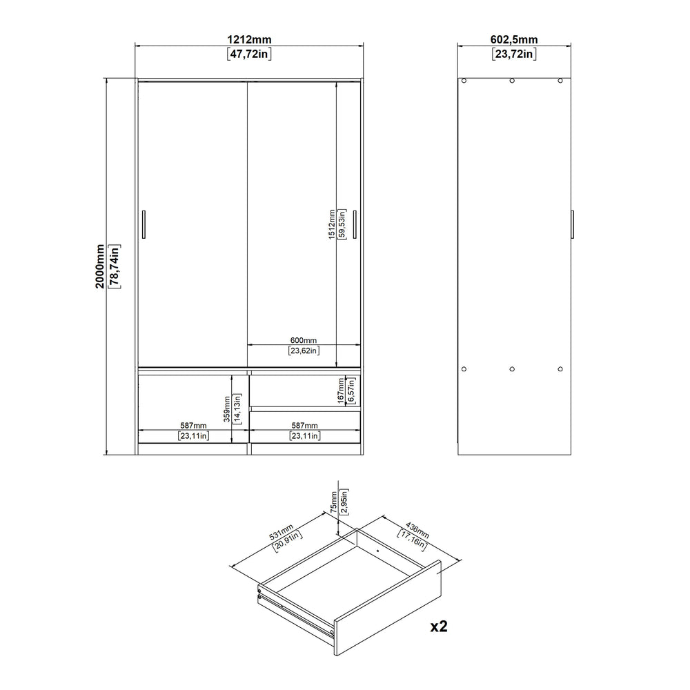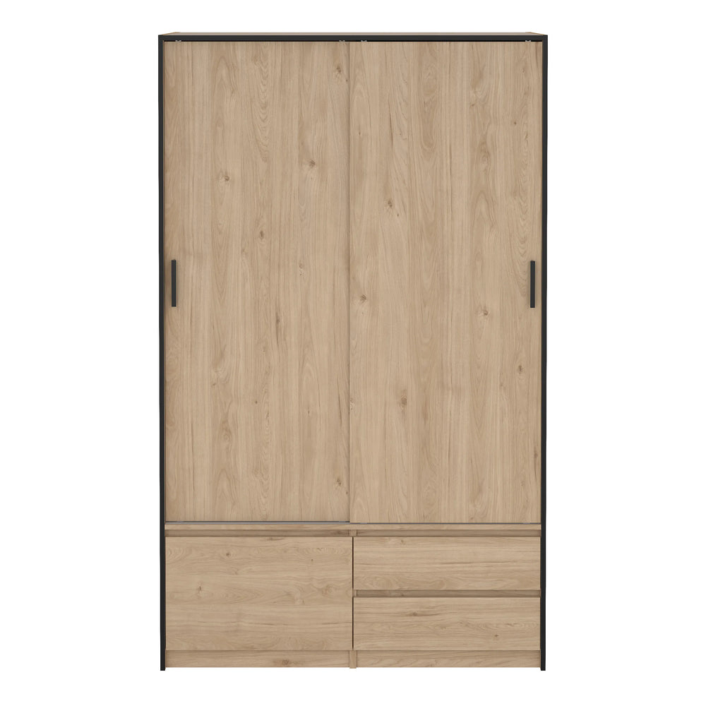 Line Wardrobe with 2 Sliding Doors 1 Small Door and 2 Drawers in Jackson Hickory Oak