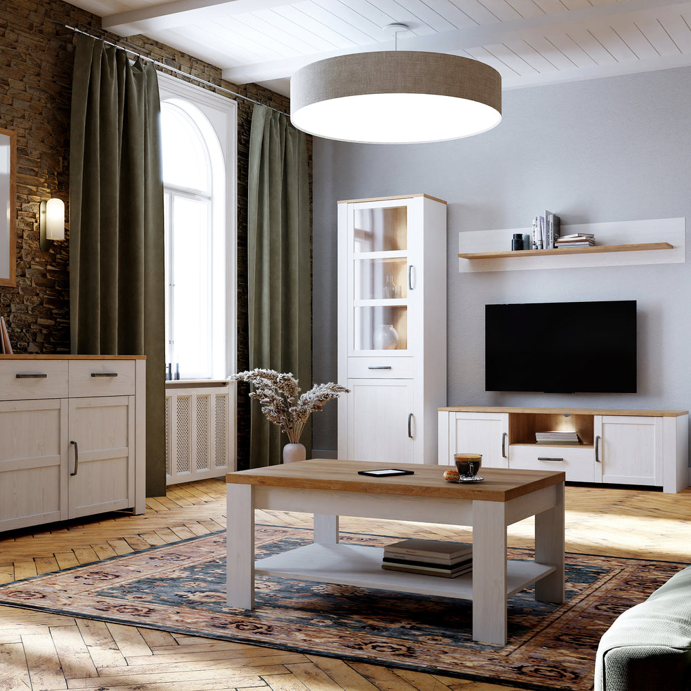 Bohol Narrow Display Cabinet with LED Lights in White Riviera Oak