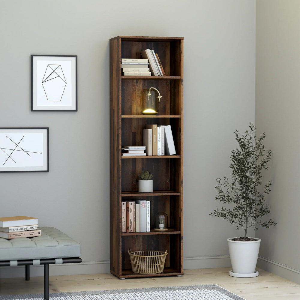 Essential Narrow 5 Shelf Bookcase in Vintage Oak