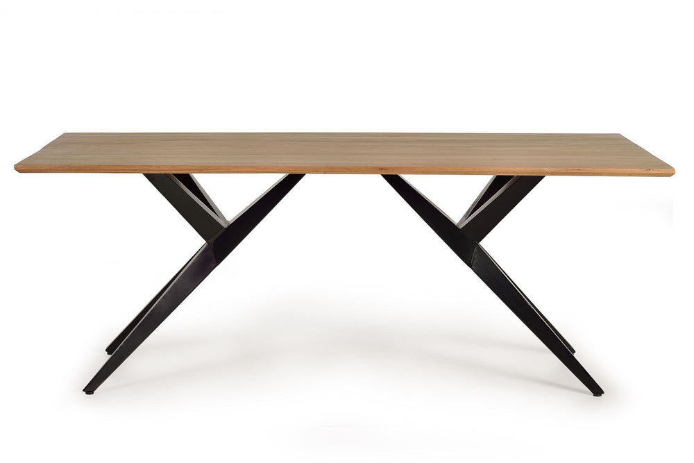 This dining table combines the robust beauty of acacia wood with a modern metal base. With a spacious top measuring 180 cm (W) x 90 cm (D) and a comfortable height of 76 cm, it offers a durable and stylish centerpiece for any dining area.