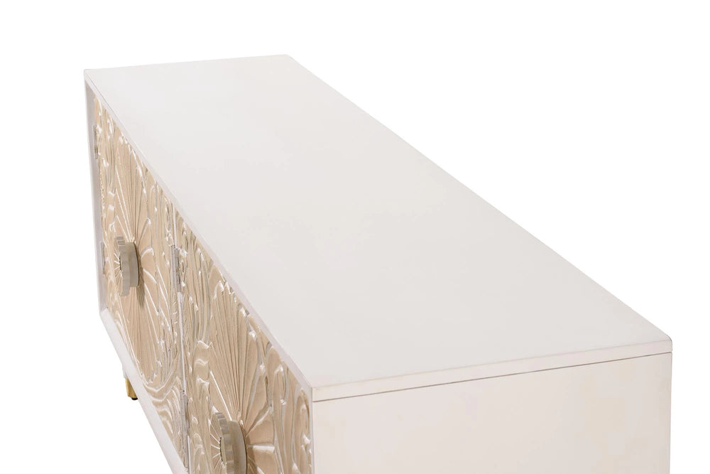 Giner and Colomer - 4-Door Mango Wood TV Cabinet With Hand-Carved Door Details