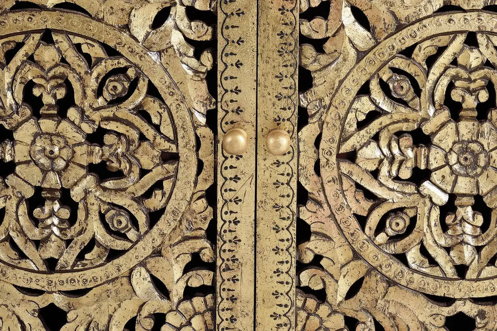 Giner and Colomer - 2-Door Mango Wood Sideboard With Hand-Carved Gold-Leaf Details