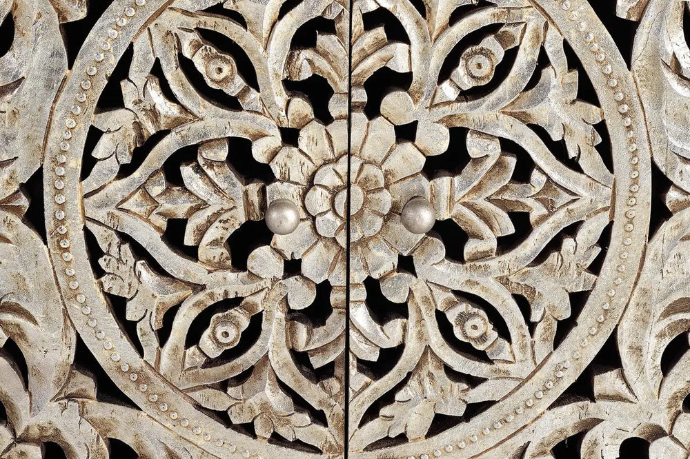 Giner and Colomer - 2-Door Mango Wood Sideboard With Hand-Carved Silver-Leaf Doors