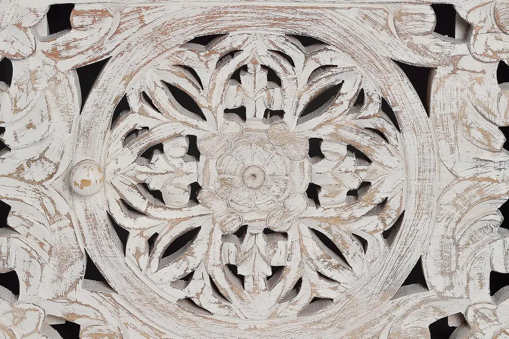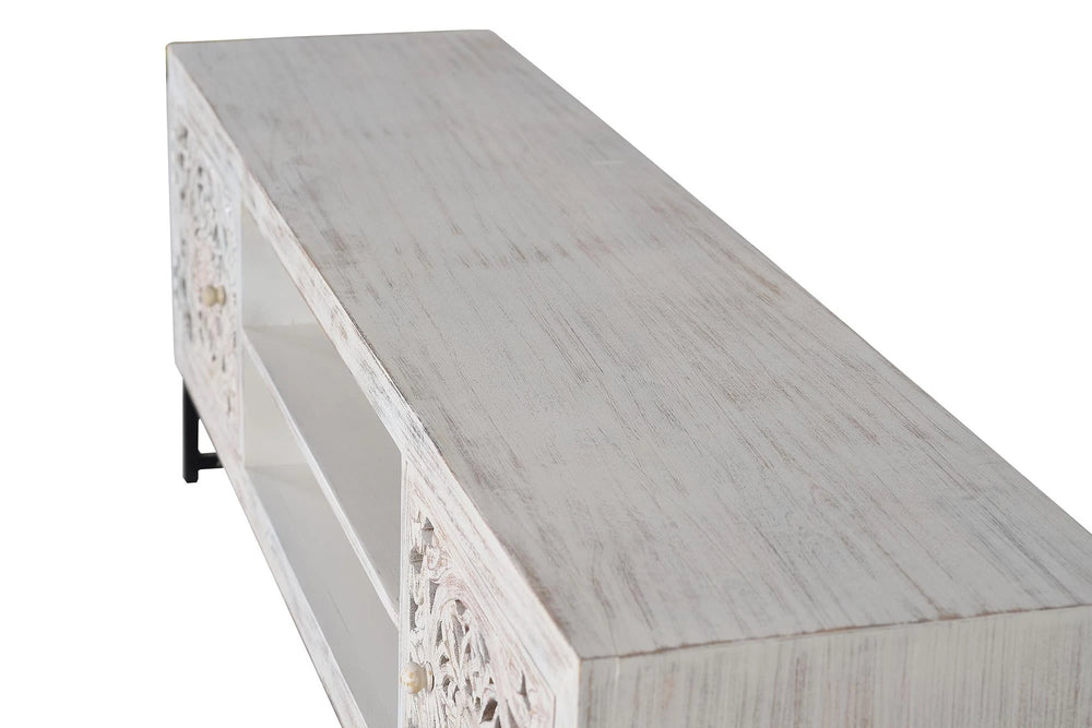 Giner and Colomer - 2-Door Mango Wood TV Cabinet With Hand-Carved Doors & Metal Base